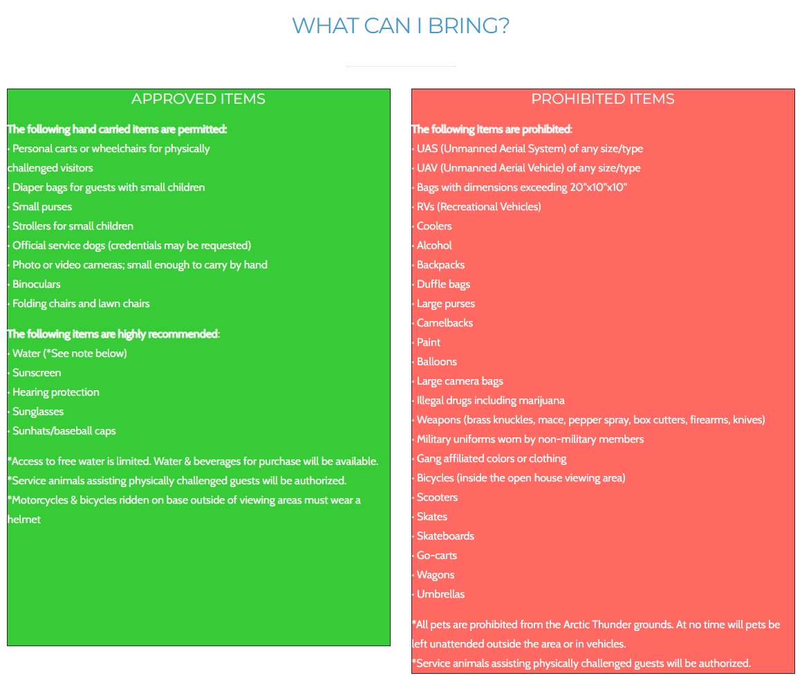 The Arctic Thunder Open House will be taking place this weekend on 30 July and 31 July. While you can learn all about the event on their webpage, we’d like to highlight the impact on JBER residents.